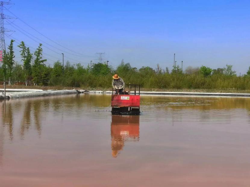 在原鹽生產(chǎn)中有一道重要的工序叫“活碴”,就是把結(jié)晶池中的鹽進行翻動,翻動后有利于鹽晶面生長,增加鹵水與鹽晶體的接觸面積,提高原鹽產(chǎn)量。每日清晨6點半,礦鹽班組準(zhǔn)時有一名工人駕駛活碴機,對鹽池板進行破碎翻動,保持鹽層的疏松和顆粒間一定的間隙,確保晶體長得既快又好。