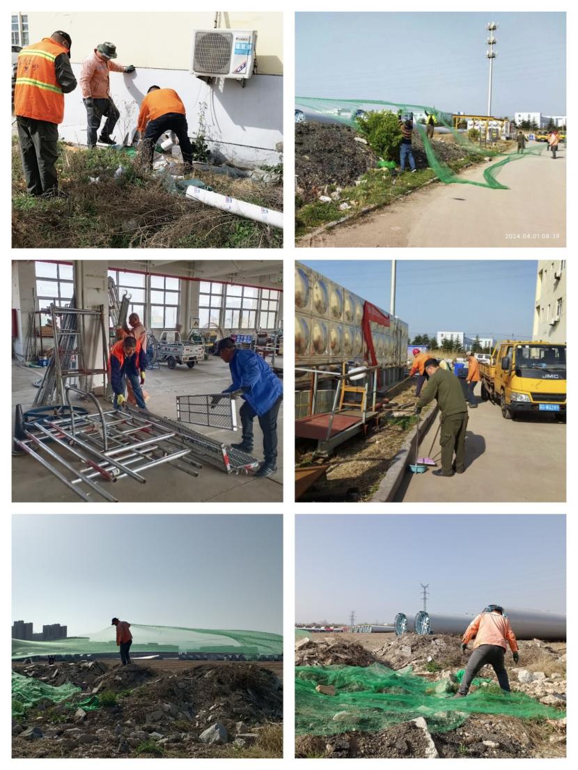 4月1日上午,該分公司各班組職工對室外露天的沙堆和石子用防塵網進行認真的覆蓋,有效的防止了揚沙揚塵對環(huán)境的污染影響。在車間里,職工們將散亂在各處的角手架等物品整齊的擺放在了指定區(qū)域,然后用水龍頭對地面進行認真的清洗,保證車間內一塵不染的視覺效果,本次活動的開展,明顯提升了車間和周邊環(huán)境的衛(wèi)生條件,增強了公司的環(huán)保形象,為大干二季度營造了良好的工作環(huán)境。